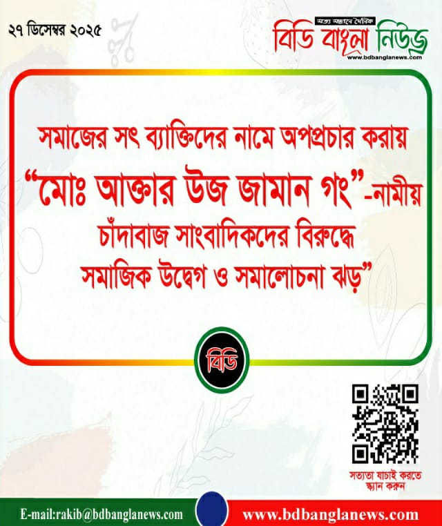 সমাজের সৎ ব্যাক্তিদের নামে অপপ্রচার করায় “মোঃ আক্তার উজ জামান গং- নামীয় চাঁদাবাজ সাংবাদিকদের বিরুদ্ধে সমাজিক উদ্বেগ ও সমালোচনা ঝড়”